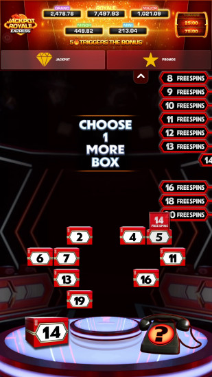 5 or more jackpot royale express overlays in view triggers the bonus where you can win instant cash prizes or one of 5 progressive pots!